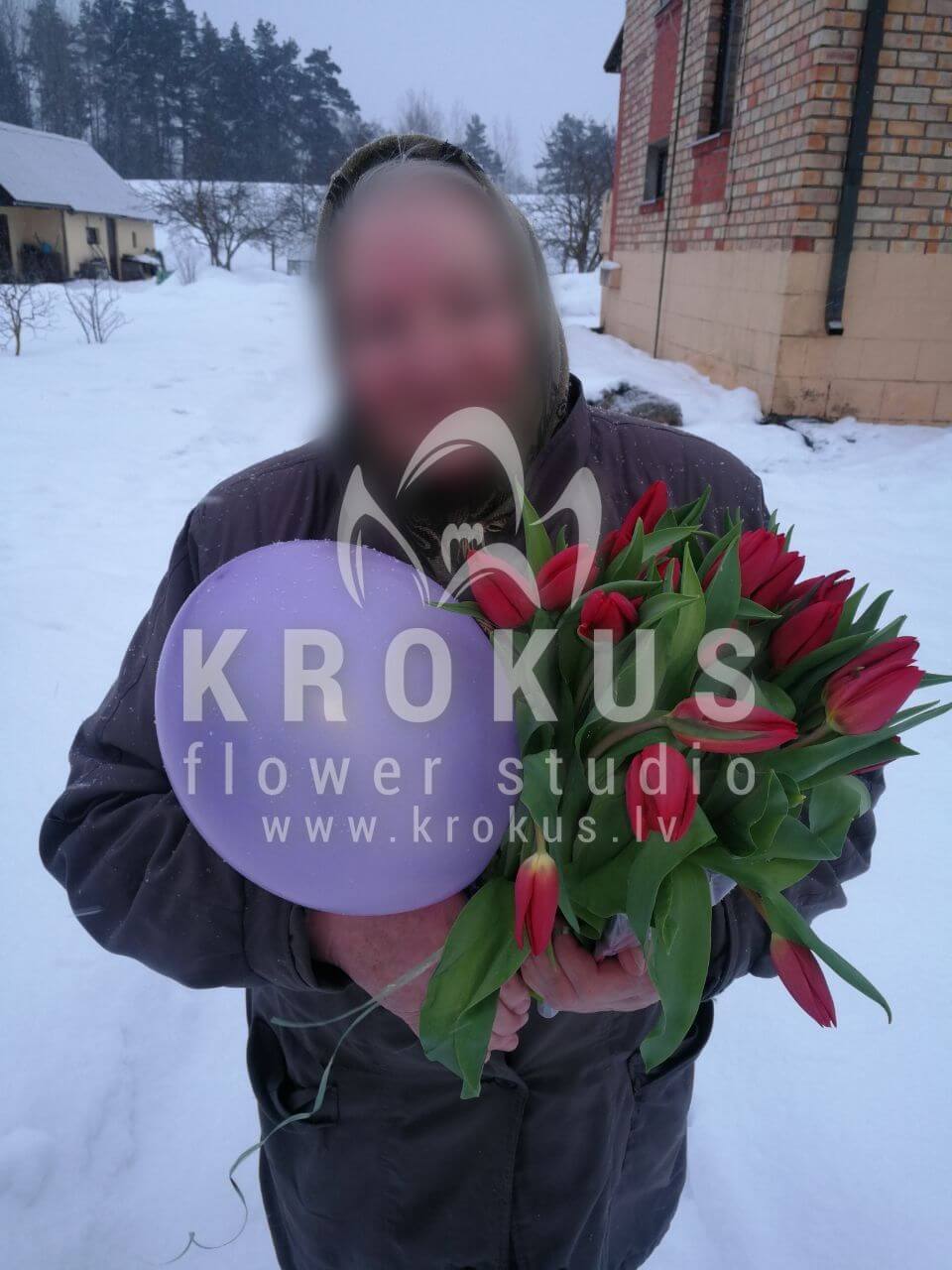 Mēs piegādājām vēl vienu pasūtījumu uz pilsētu Rēzekne. Pasūtītājs vēlējās: Ziedu piegāde Sarkanas tulpes. Ziedu piegāde Free balloon