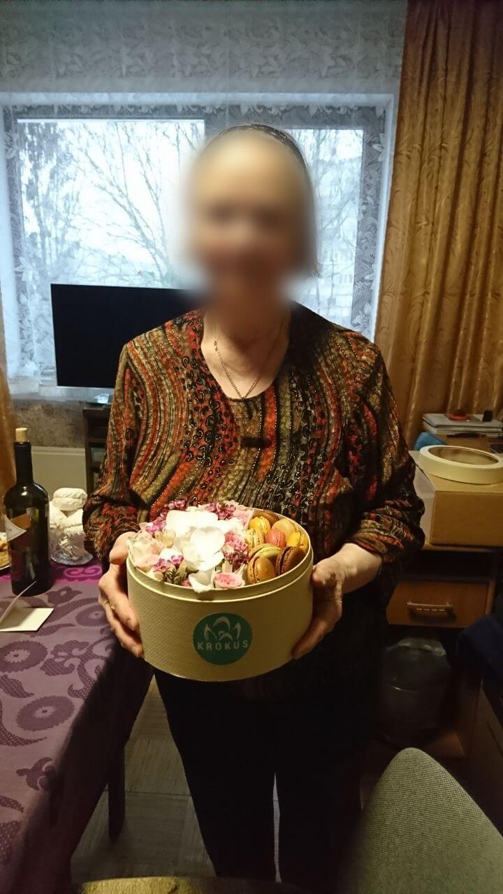 Mēs piegādājām vēl vienu pasūtījumu uz pilsētu Rīga. Pasūtītājs vēlējās: Ziedu piegāde Flowerbox ar makarūniem (macaron) (Izmērs: