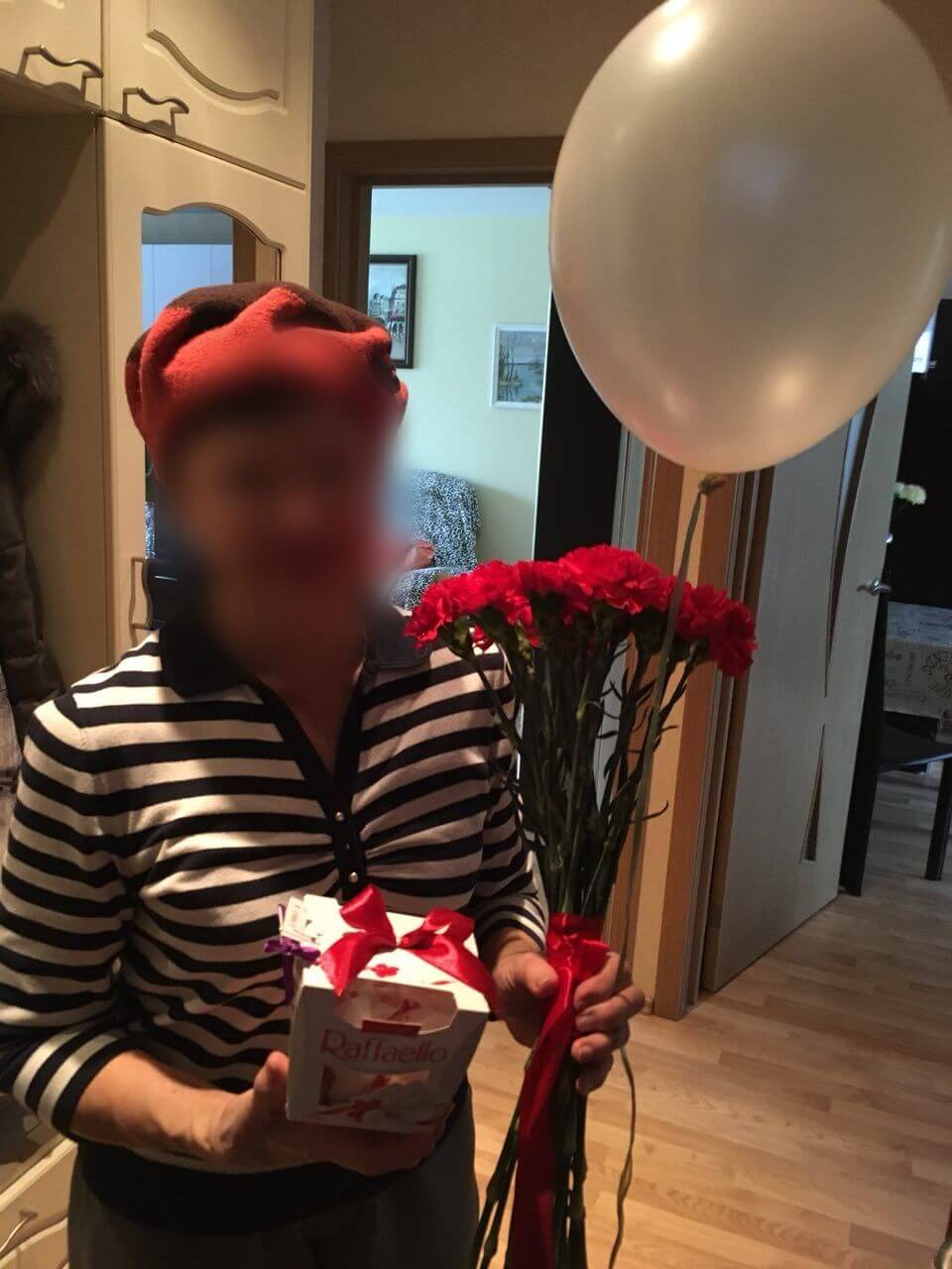 Mēs piegādājām vēl vienu pasūtījumu uz pilsētu Rīga. Pasūtītājs vēlējās: Ziedu piegāde Krāsaino neļķu pušķis. Ziedu piegāde Raffaello 150g (Konfektes RAFFAELLO, 150g