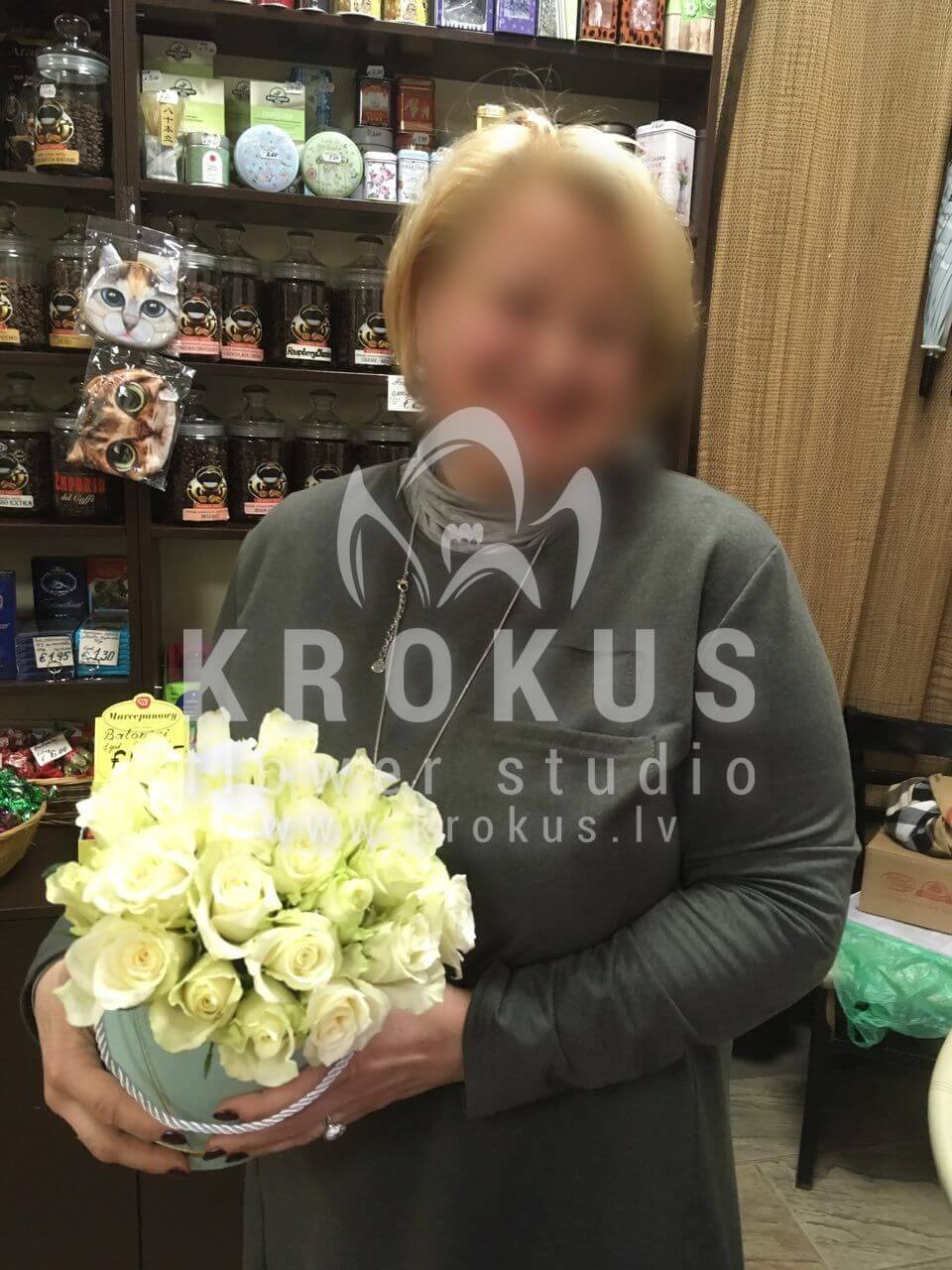Mēs piegādājām vēl vienu pasūtījumu uz pilsētu Rīga. Pasūtītājs vēlējās: Ziedu piegāde rozes stilīgā cepurkastē (Fotogrāfijai ir ilustratīvs nolūks. Kastes krāsa var atšķirties.)