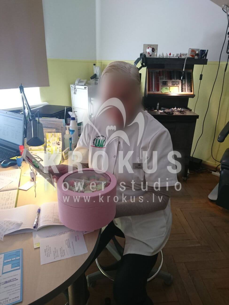 Mēs piegādājām vēl vienu pasūtījumu uz pilsētu Rīga. Pasūtītājs vēlējās: Ziedu piegāde Flowerbox ar makarūniem (macaron) (Izmērs: