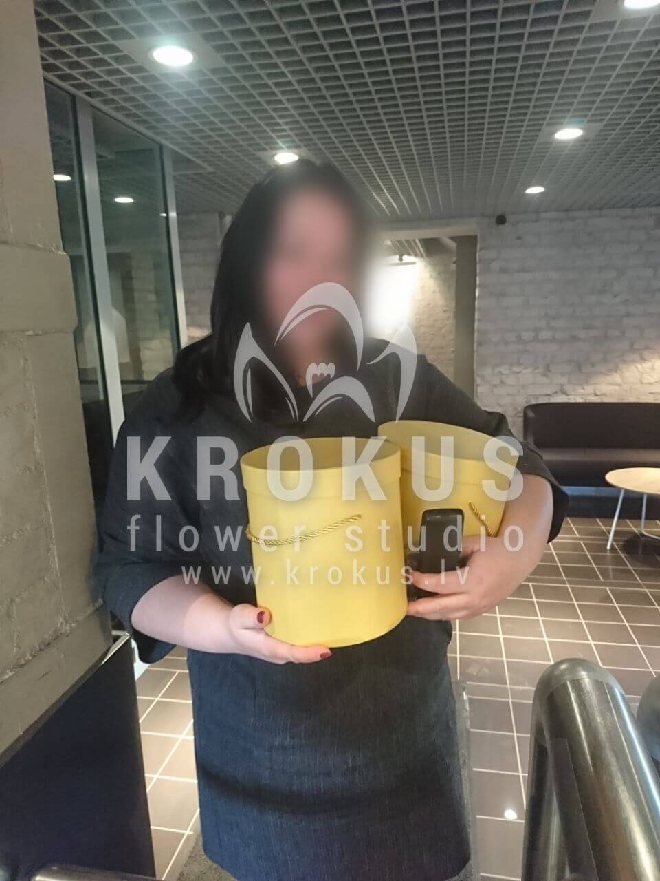Mēs piegādājām vēl vienu pasūtījumu uz pilsētu Rīga. Pasūtītājs vēlējās: Ziedu piegāde Flowerbox ar macarooniem (Izmērs: