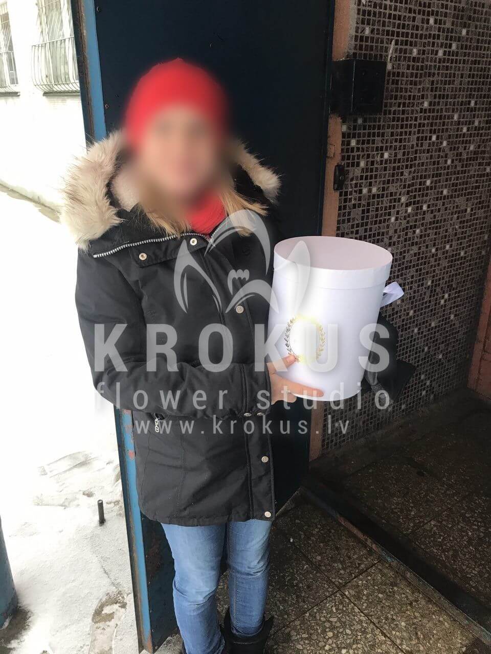 Mēs piegādājām vēl vienu pasūtījumu uz pilsētu Rīga. Pasūtītājs vēlējās: Ziedu piegāde Flowerbox ar macarooniem (Izmērs:
