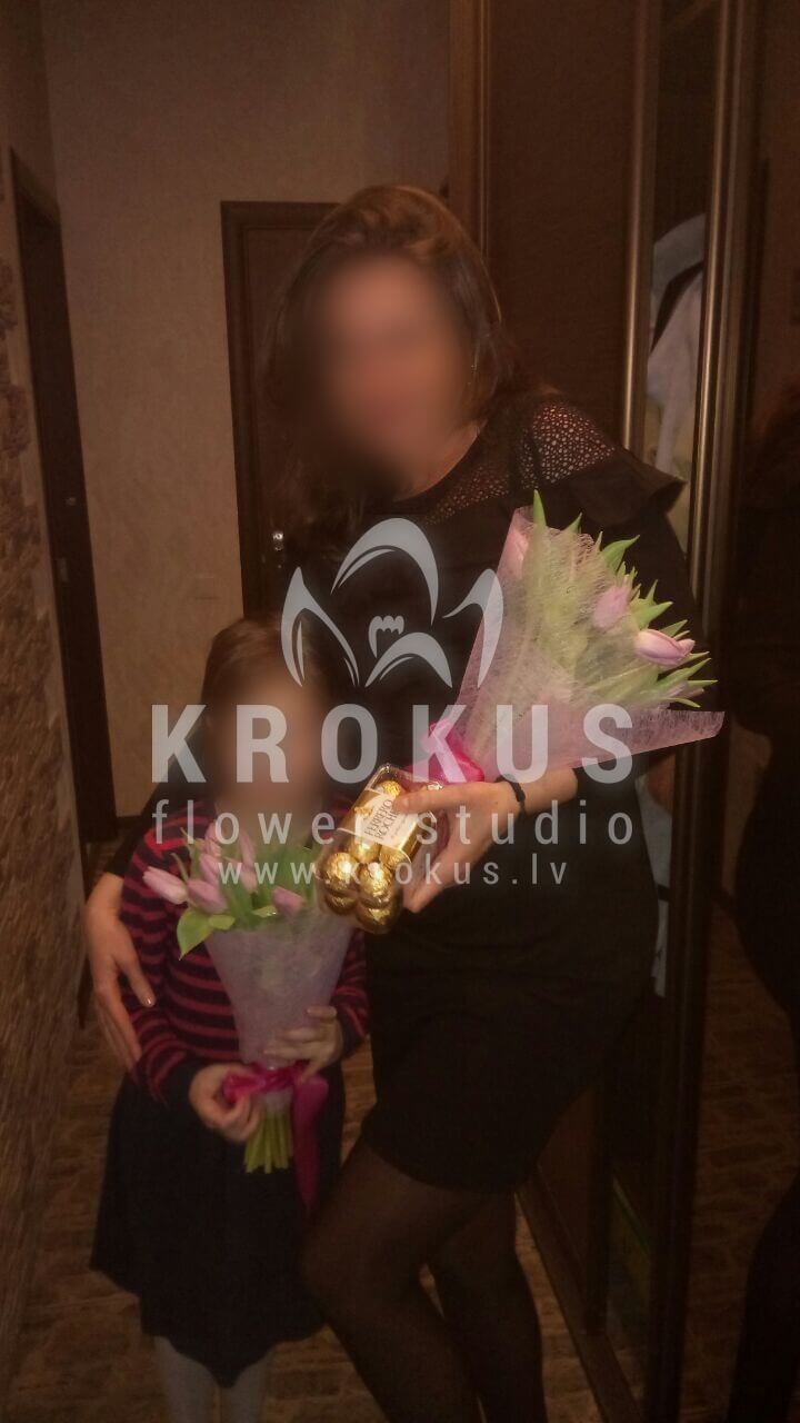Mēs piegādājām vēl vienu pasūtījumu uz pilsētu Rīga. Pasūtītājs vēlējās: Ziedu piegāde Rozā tulpe. Ziedu piegāde Rozā tulpe. Ziedu piegāde Ferrero Rocher 200g