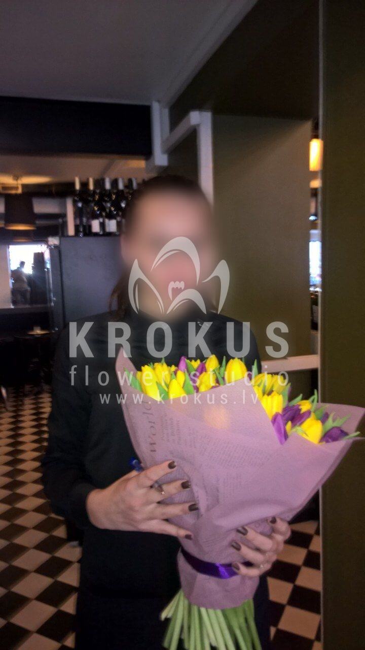Mēs piegādājām vēl vienu pasūtījumu uz pilsētu Rīga. Pasūtītājs vēlējās: Ziedu piegāde Tulpju pušķis "Saulainā diena"