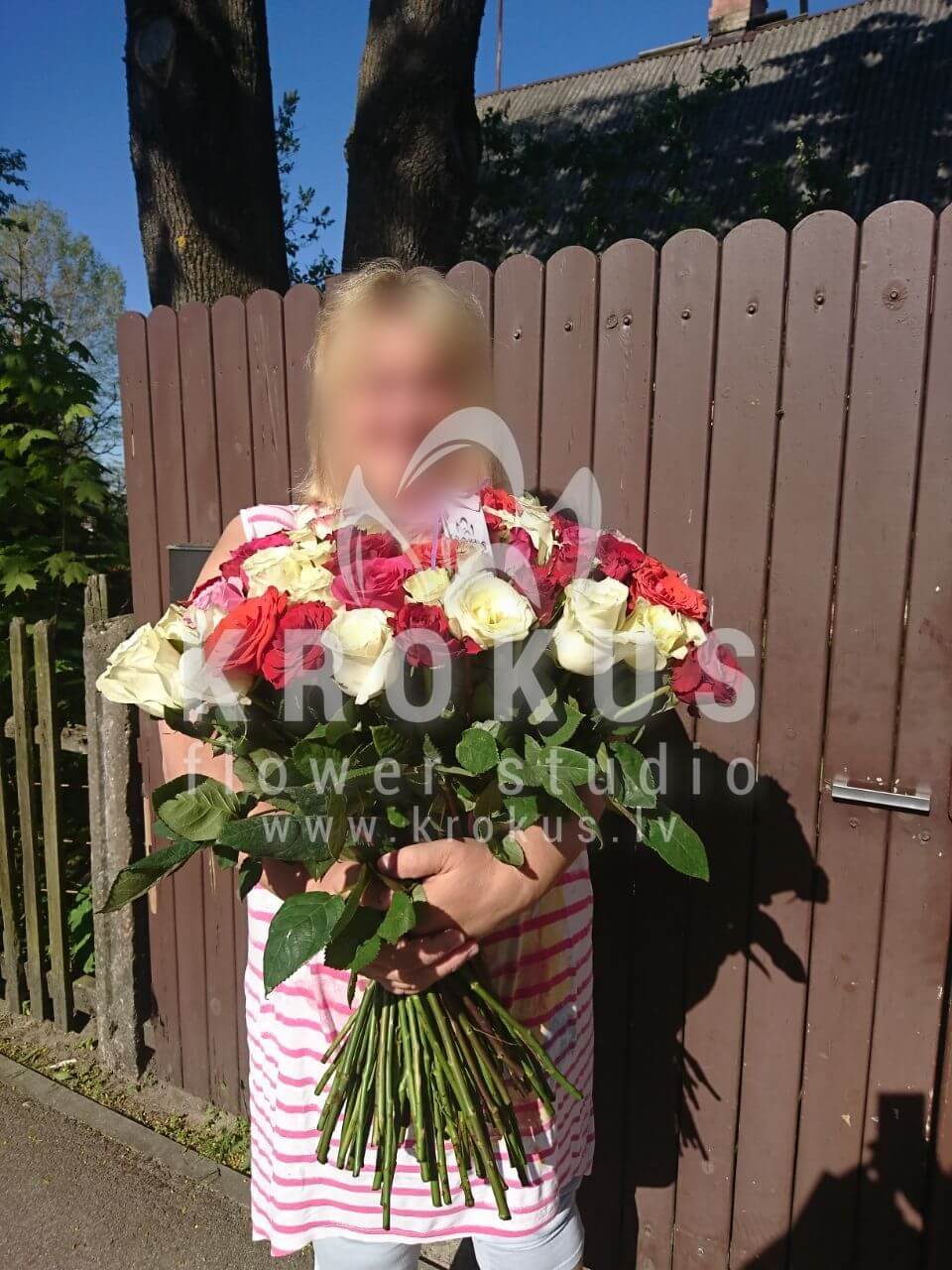 Mēs piegādājām vēl vienu pasūtījumu uz pilsētu Rīga. Pasūtītājs vēlējās: Ziedu piegāde 101 Roze MIX SUPER CENA!!! (Pušķa sastāvs var nedaudz atšķirties no attēlā redzamā, atkarībā no sezonas!)