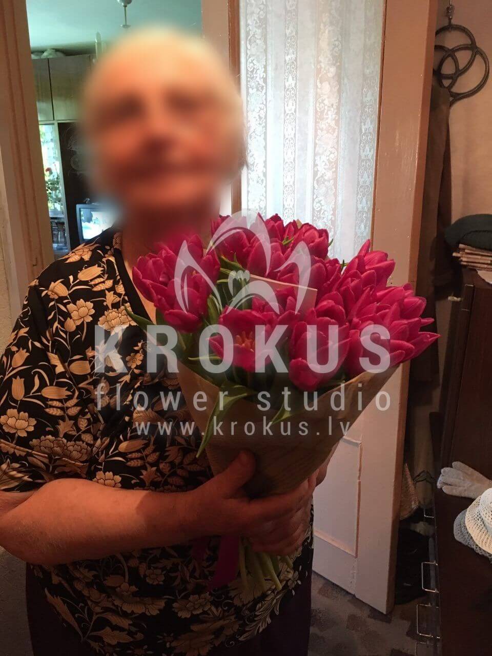 Mēs piegādājām vēl vienu pasūtījumu uz pilsētu Rīga. Pasūtītājs vēlējās: Ziedu piegāde Violetu tulpju pušķis