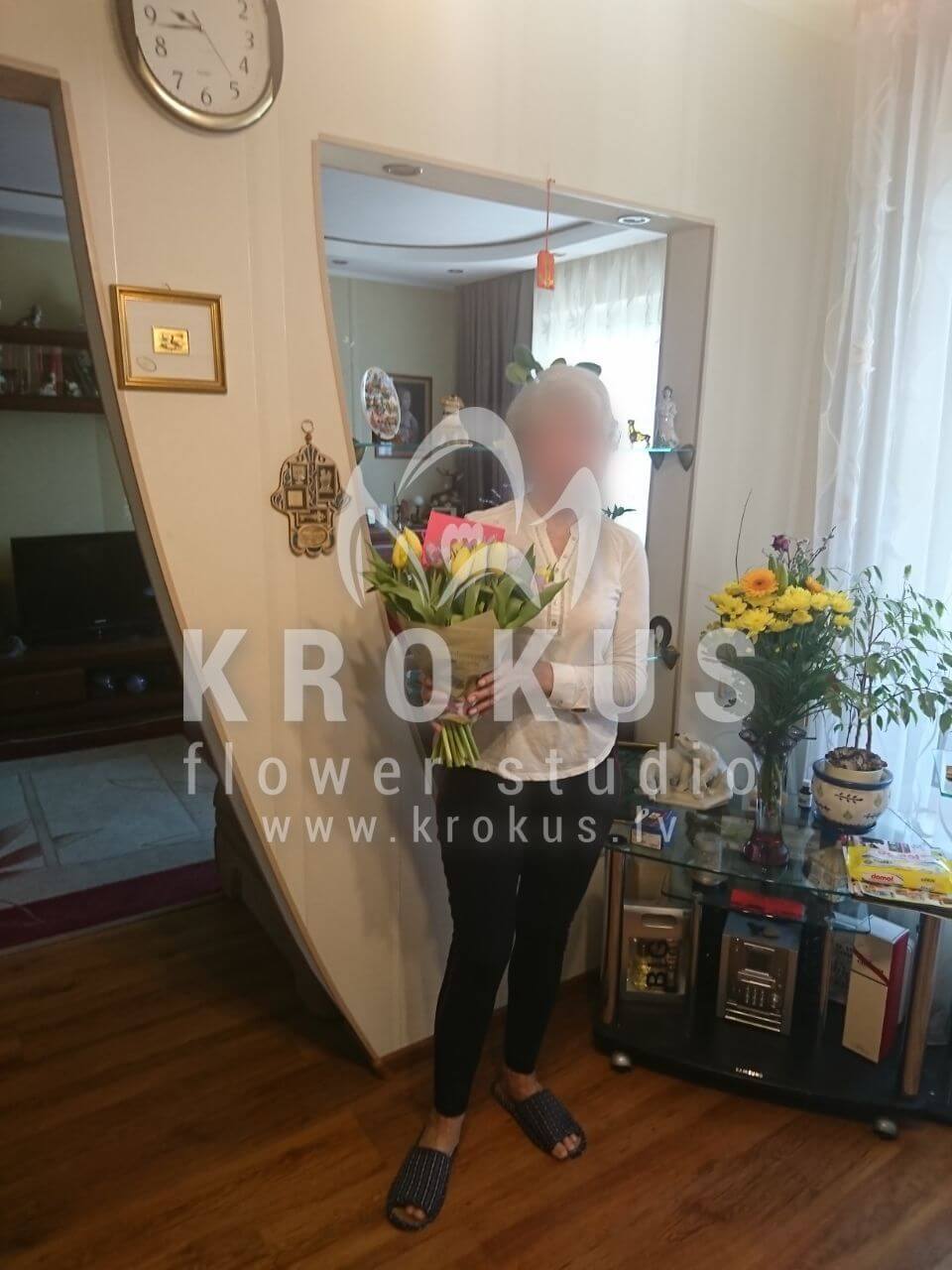 Mēs piegādājām vēl vienu pasūtījumu uz pilsētu Rīga. Pasūtītājs vēlējās: Ziedu piegāde Tulpju pušķis "Saulainā diena"