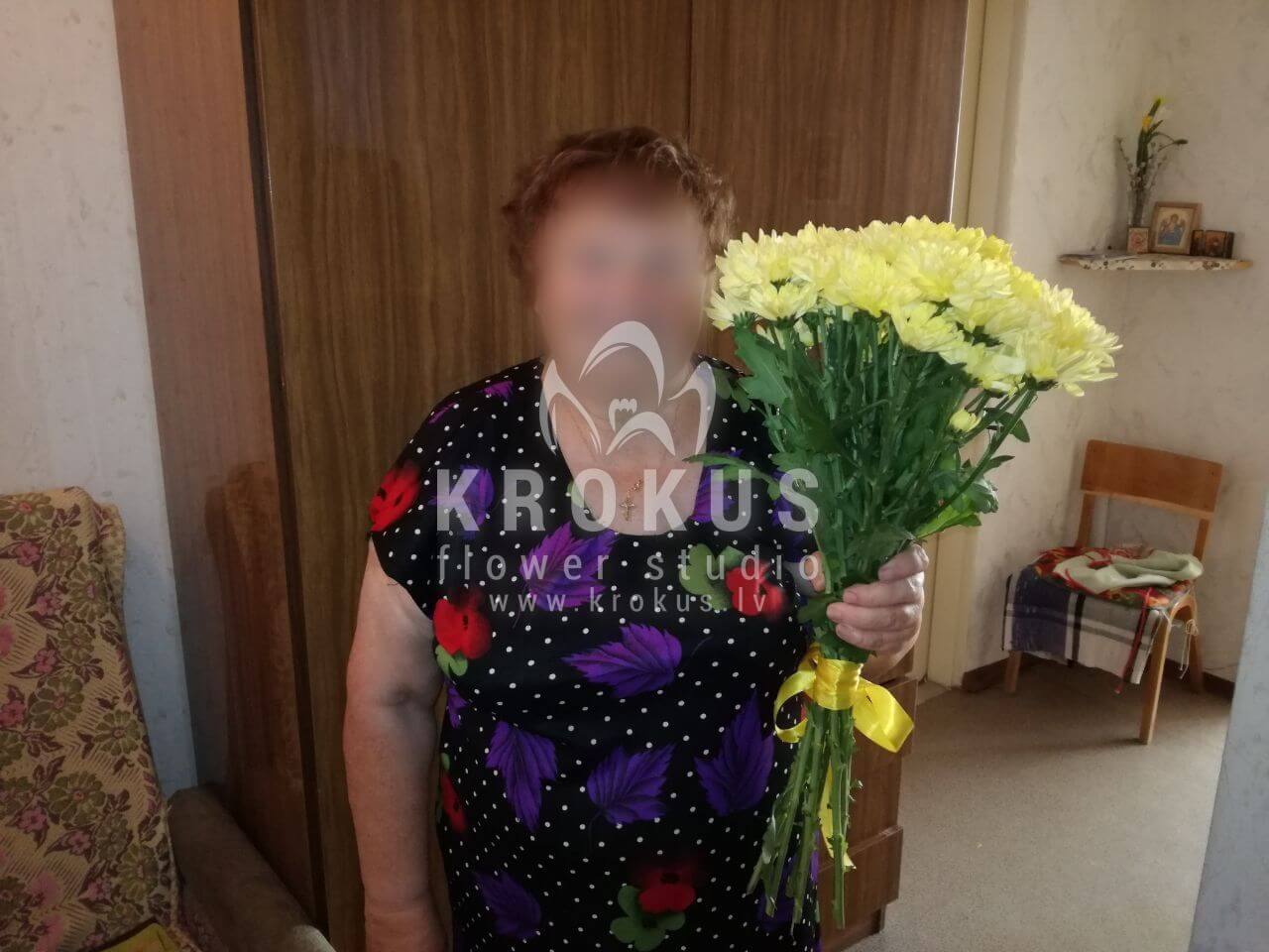 Mēs piegādājām vēl vienu pasūtījumu uz pilsētu Rīga. Pasūtītājs vēlējās: Ziedu piegāde Krizantēmas "Saba"