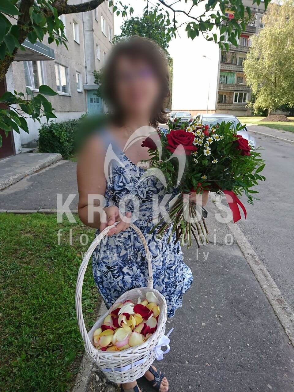 Ziedu sastāvā: Sarkanas rozes, Pistācija, Hypericum, Kumelīte.