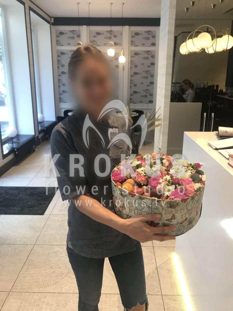 Mēs piegādājām vēl vienu pasūtījumu uz pilsētu Rīga. Pasūtītājs vēlējās: Ziedu piegāde Flowerbox ar macarooniem (Izmērs: