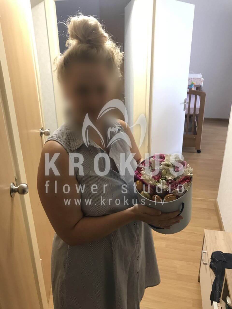 Mēs piegādājām vēl vienu pasūtījumu uz pilsētu Rīga. Pasūtītājs vēlējās: Ziedu piegāde Flowerbox ar makarūniem (macaroon) (Izmērs:
