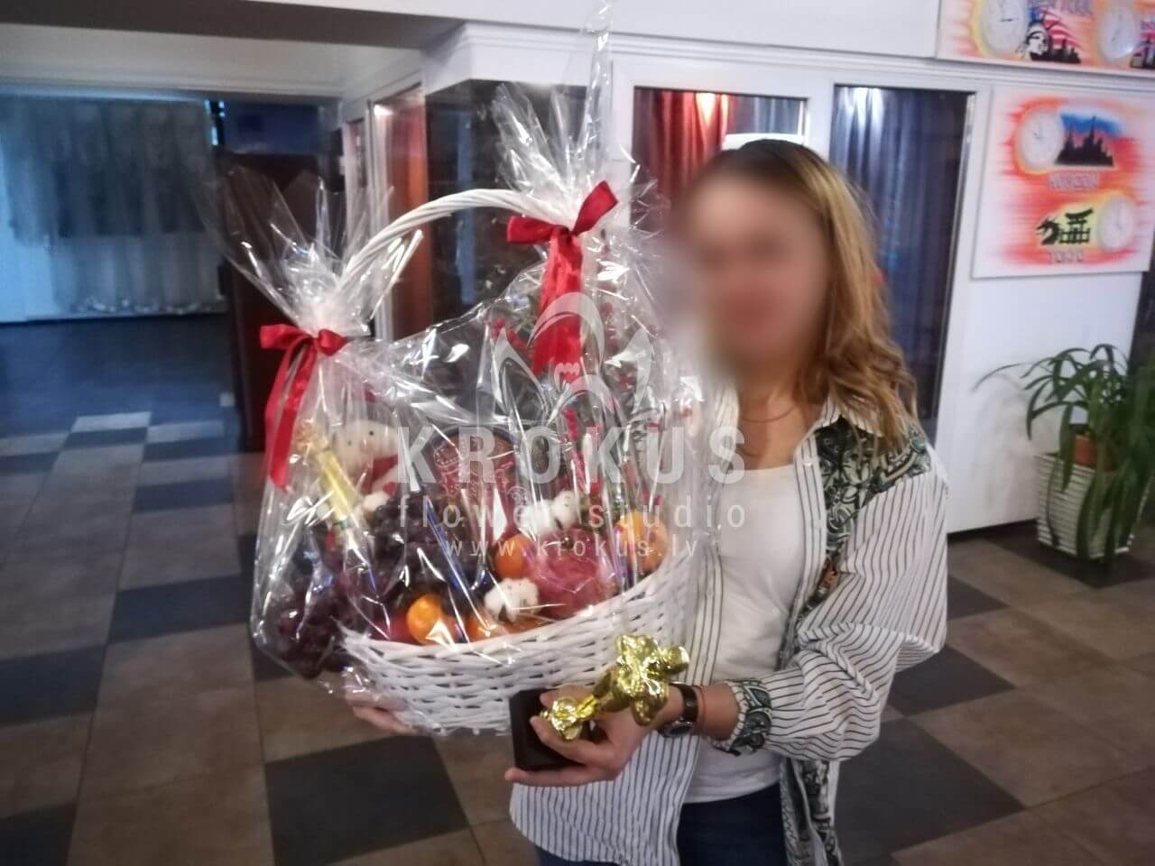 Mēs piegādājām vēl vienu pasūtījumu uz pilsētu Rīga. Pasūtītājs vēlējās: Ziedu piegāde Oskars. Ziedu piegāde Grozs ar bezalkaholisko šampanieti