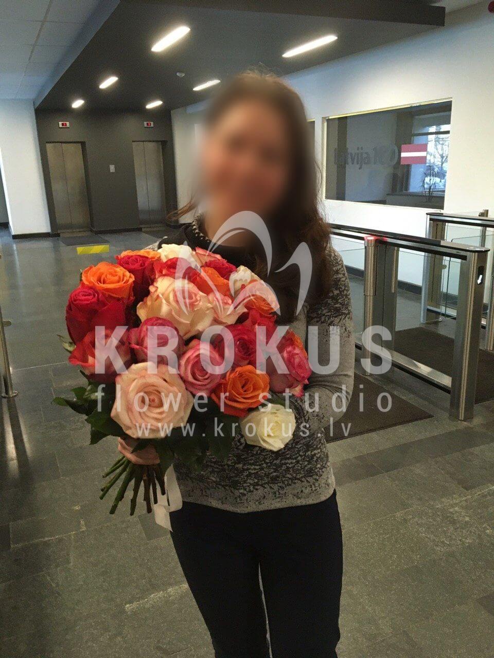 Ziedu sastāvā: Rozā rozes, Sarkanas rozes, Dzeltenas rozes, Baltas rozes, Oranžas rozes.