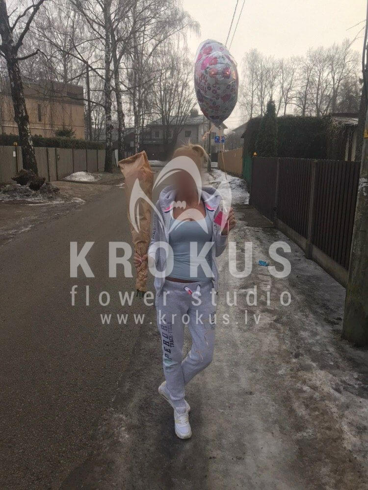 Mēs piegādājām vēl vienu pasūtījumu uz pilsētu Rīga. Pasūtītājs vēlējās: Ziedu piegāde Rozā rozes 40cm. Ziedu piegāde Happy Birthday florar 43cm