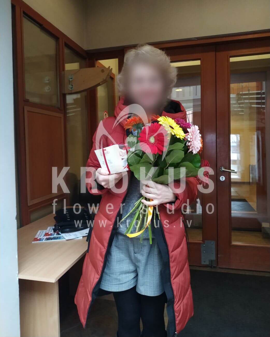 Ziedu sastāvā: Gerberas, Salal (Goltjēra).