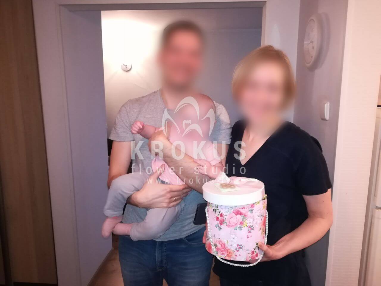 Mēs piegādājām vēl vienu pasūtījumu uz pilsētu Rīga. Pasūtītājs vēlējās: Ziedu piegāde Flowerbox ar makarūniem (macaroon) (Izmērs: