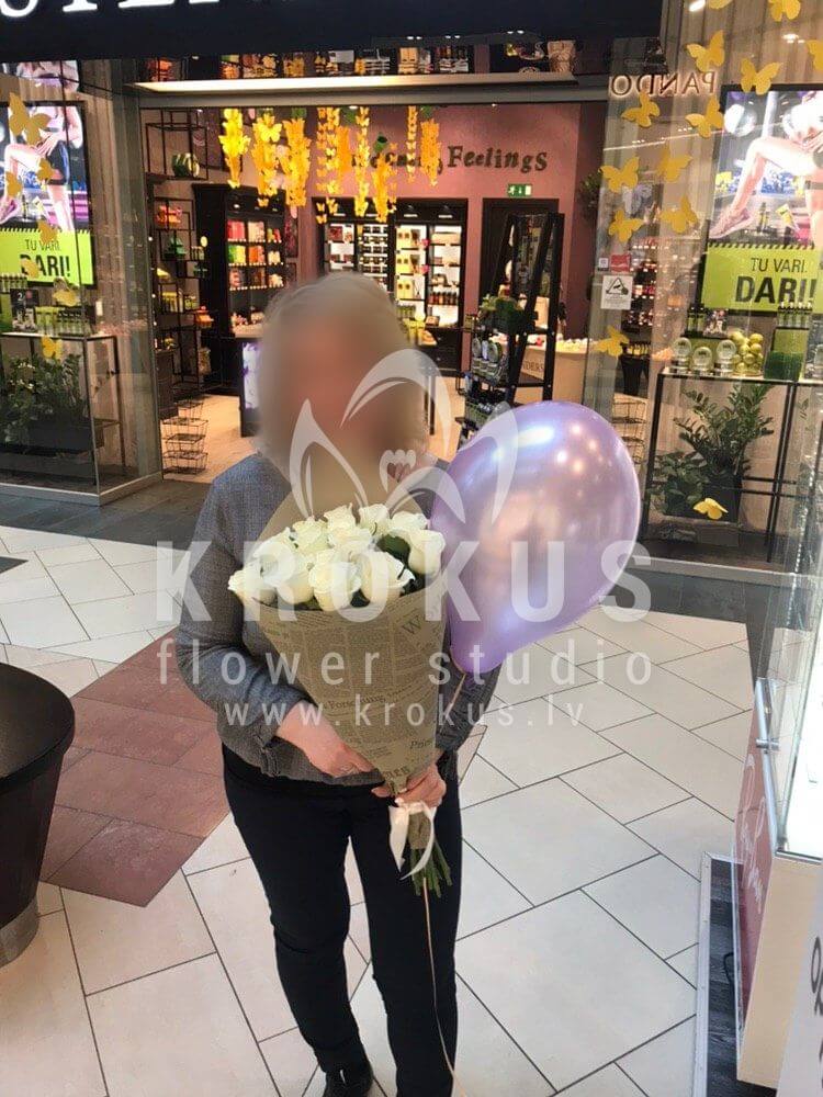 Mēs piegādājām vēl vienu pasūtījumu uz pilsētu Rīga. Pasūtītājs vēlējās: Ziedu piegāde Baltas rozes XXL 50cm. Ziedu piegāde Hēlija baloni asortimentā (cena par 1 gab)