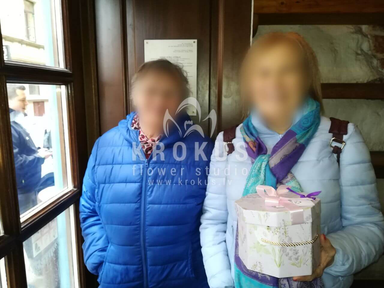 Mēs piegādājām vēl vienu pasūtījumu uz pilsētu Rīga. Pasūtītājs vēlējās: Ziedu piegāde Flowerbox ar macarooniem (Izmērs: