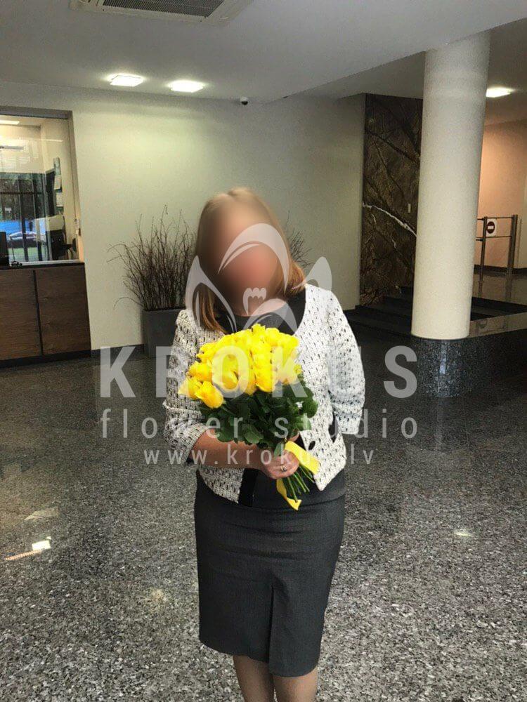 Mēs piegādājām vēl vienu pasūtījumu uz pilsētu Rīga. Pasūtītājs vēlējās: Ziedu piegāde Dzeltenas rozes 50см