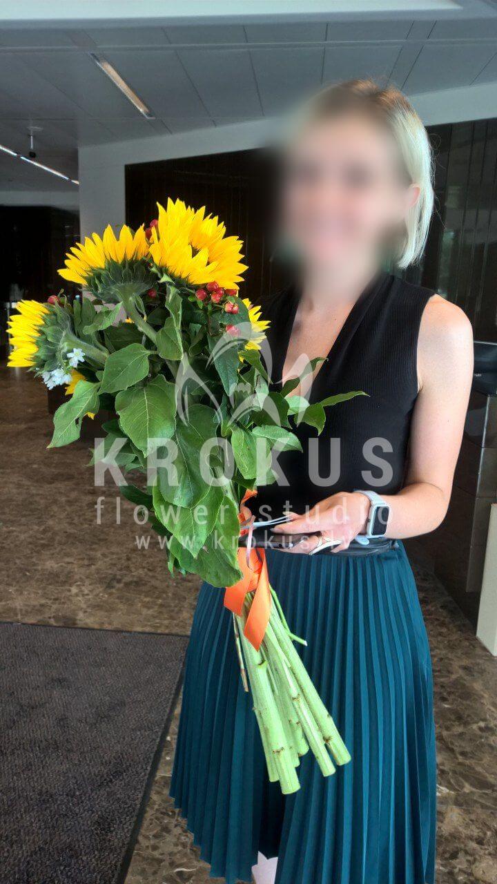 Mēs piegādājām vēl vienu pasūtījumu uz pilsētu Rīga. Pasūtītājs vēlējās: Ziedu piegāde Pušķis no saulespuķēm (Pušķa sastāvs var nedaudz atšķirties no attēlā redzamā, atkarībā no sezonas!)