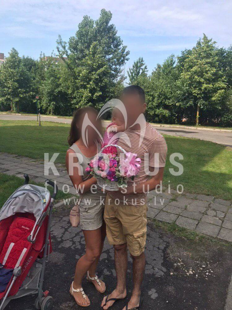 Mēs piegādājām vēl vienu pasūtījumu uz pilsētu Rīga. Pasūtītājs vēlējās: Ziedu piegāde Ziedu grozs "Feja" (Pušķa sastāvs var nedaudz atšķirties no attēlā redzamā, atkarībā no sezonas!