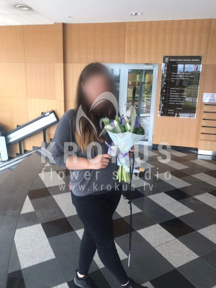 Mēs piegādājām vēl vienu pasūtījumu uz pilsētu Rīga. Pasūtītājs vēlējās: Ziedu piegāde Balto un violeto tulpju pušķis