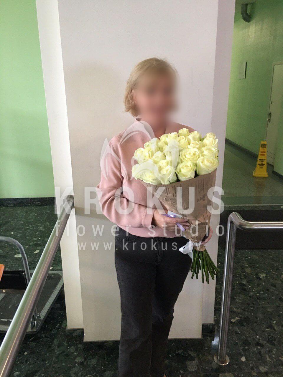 Mēs piegādājām vēl vienu pasūtījumu uz pilsētu Rīga. Pasūtītājs vēlējās: Ziedu piegāde Baltu rožu pušķis 70cm