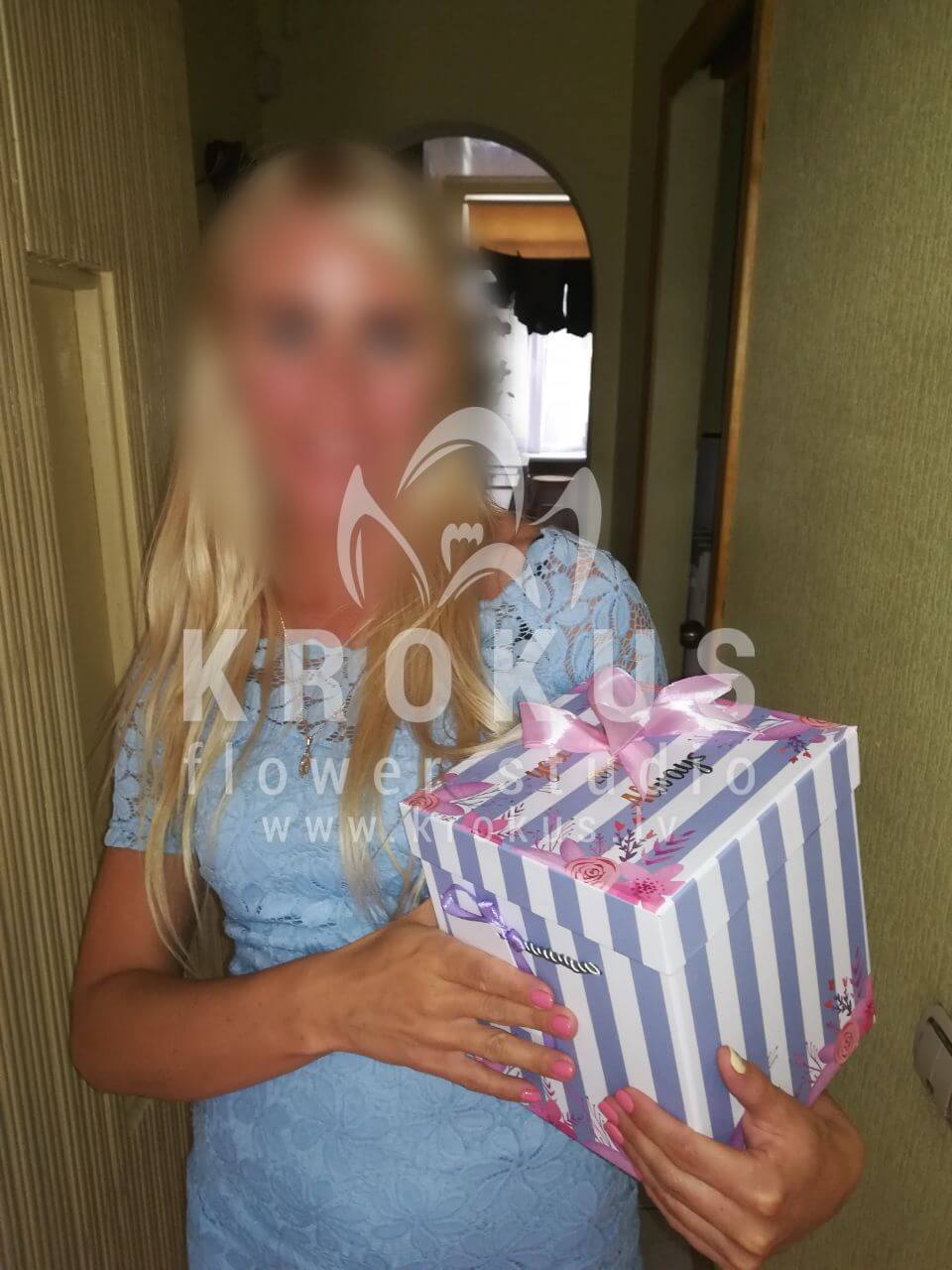 Mēs piegādājām vēl vienu pasūtījumu uz pilsētu Rīga. Pasūtītājs vēlējās: Ziedu piegāde Flowerbox ar macarooniem (Izmērs: