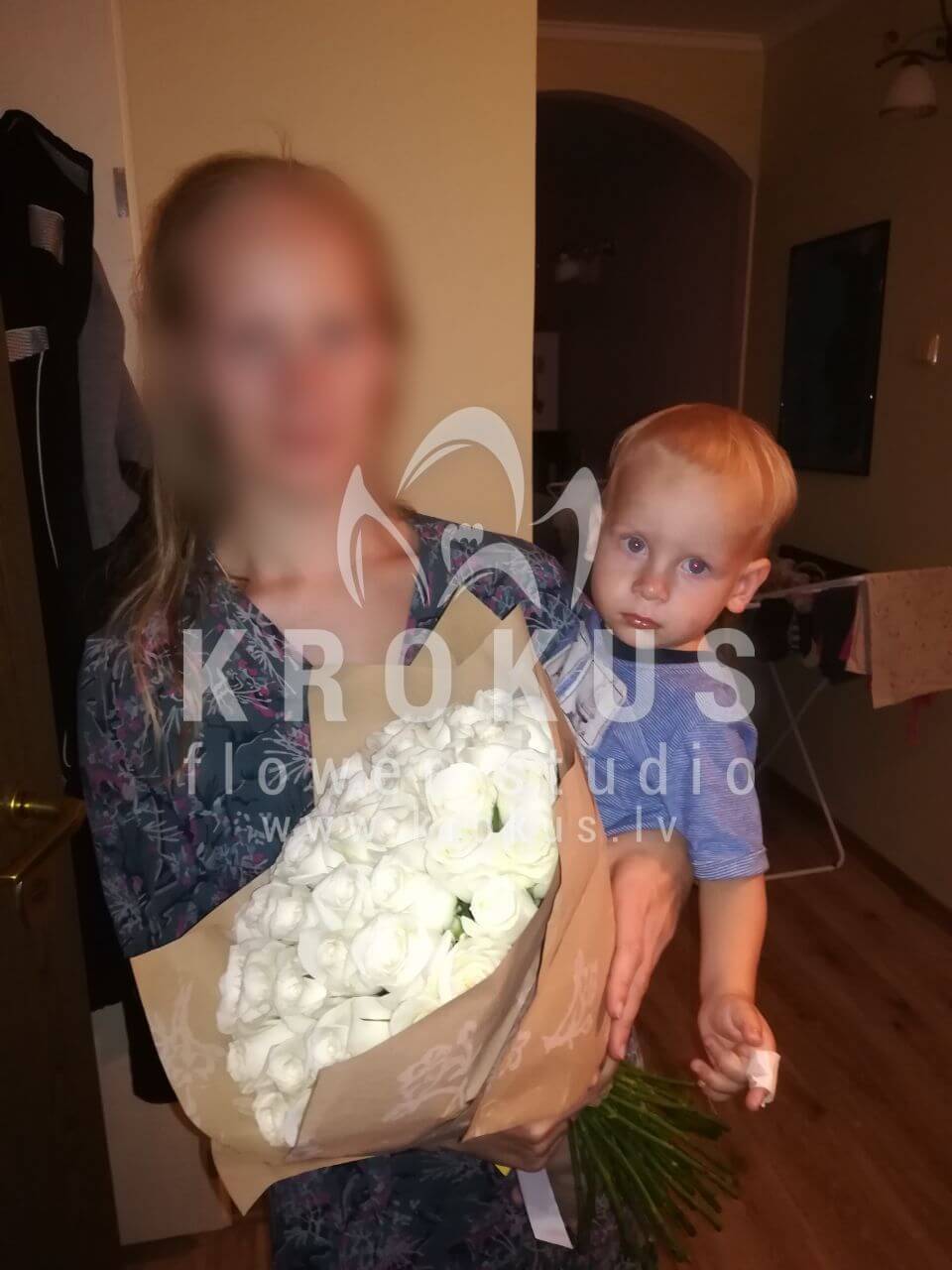 Mēs piegādājām vēl vienu pasūtījumu uz pilsētu Rīga. Pasūtītājs vēlējās: Ziedu piegāde Balto rožu pušķis 60cm NEIESLĒGT ŠO