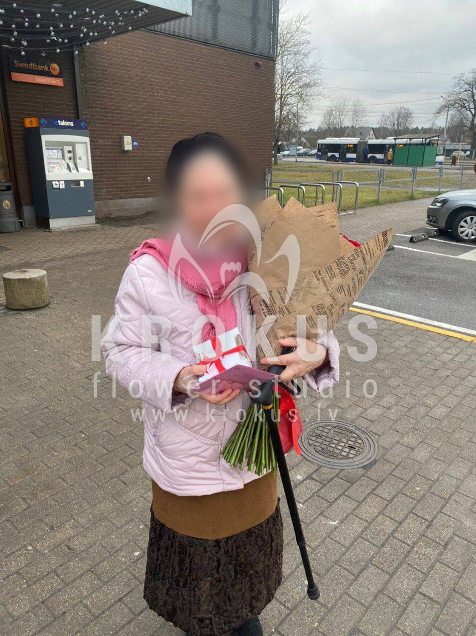 Mēs piegādājām vēl vienu pasūtījumu uz pilsētu Rīga. Pasūtītājs vēlējās: Ziedu piegāde 51 Sarkana roze SUPER CENA!!!. Ziedu piegāde Raffaello 150g (Konfektes RAFFAELLO, 150g