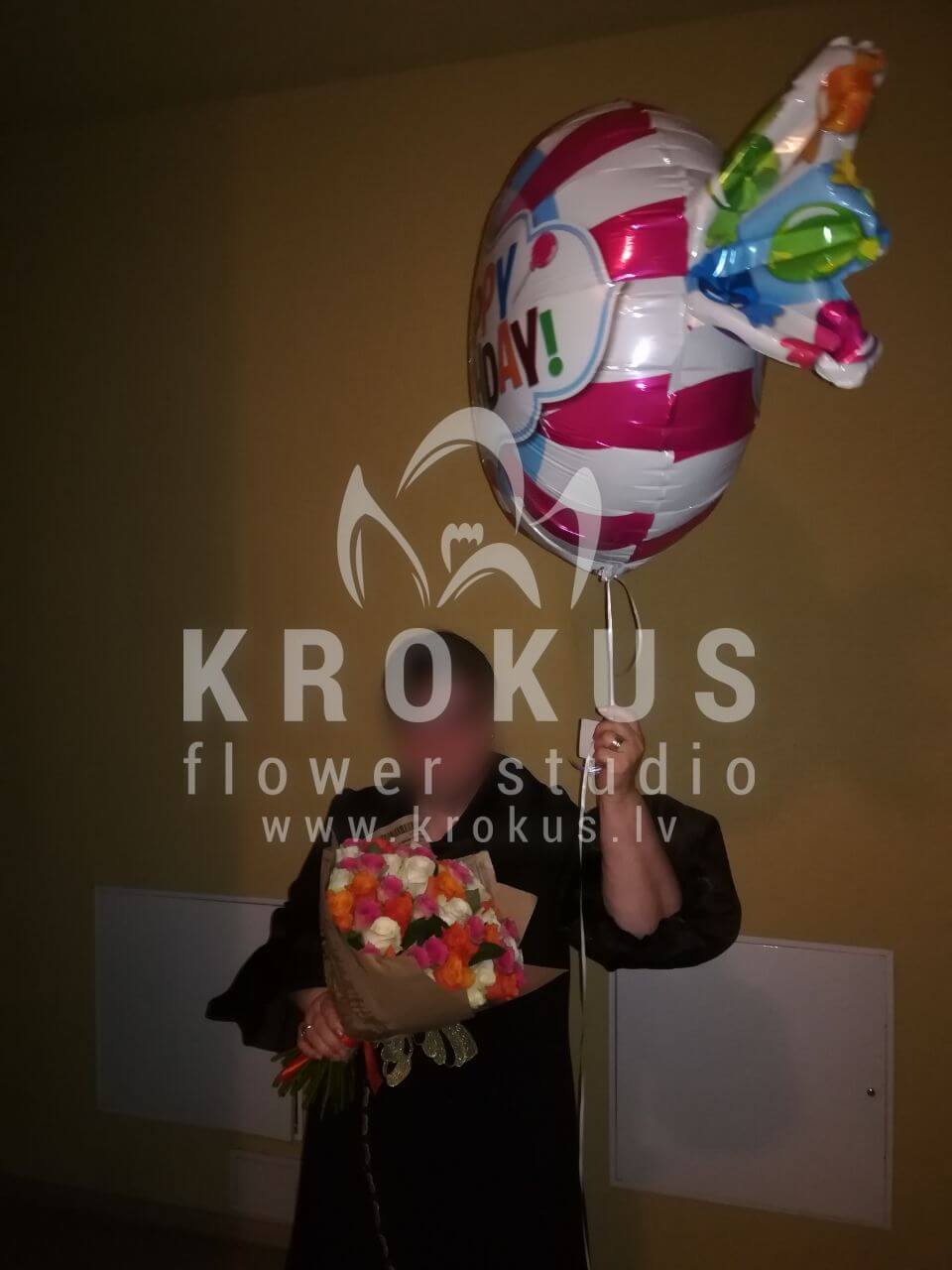 Mēs piegādājām vēl vienu pasūtījumu uz pilsētu Rīga. Pasūtītājs vēlējās: Ziedu piegāde 51 Roze MIX SUPER CENA!!! (Pušķa krāsa var nedaudz atšķirties no attēlā redzamā.). Ziedu piegāde Happy birthday candy 101cm x 60cm
