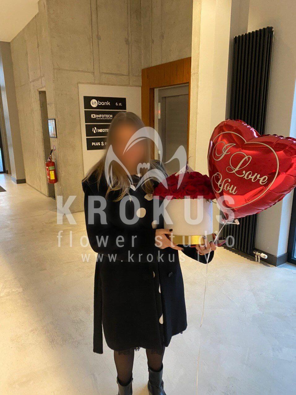 Mēs piegādājām vēl vienu pasūtījumu uz pilsētu Rīga. Pasūtītājs vēlējās: Ziedu piegāde Sarkanas rozes kastē (Fotogrāfijai ir ilustratīvs nolūks. Kastes krāsa var atšķirties.). Ziedu piegāde Folija Balons sirds 18x45cm