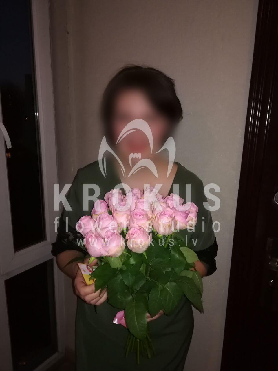 Mēs piegādājām vēl vienu pasūtījumu uz pilsētu Rīga. Pasūtītājs vēlējās: Ziedu piegāde Rozā rozes 50cm