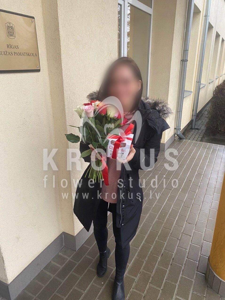 Mēs piegādājām vēl vienu pasūtījumu uz pilsētu Rīga. Pasūtītājs vēlējās: Ziedu piegāde Roze MIX 50CM. Ziedu piegāde Raffaello 150g (Konfektes RAFFAELLO, 150g