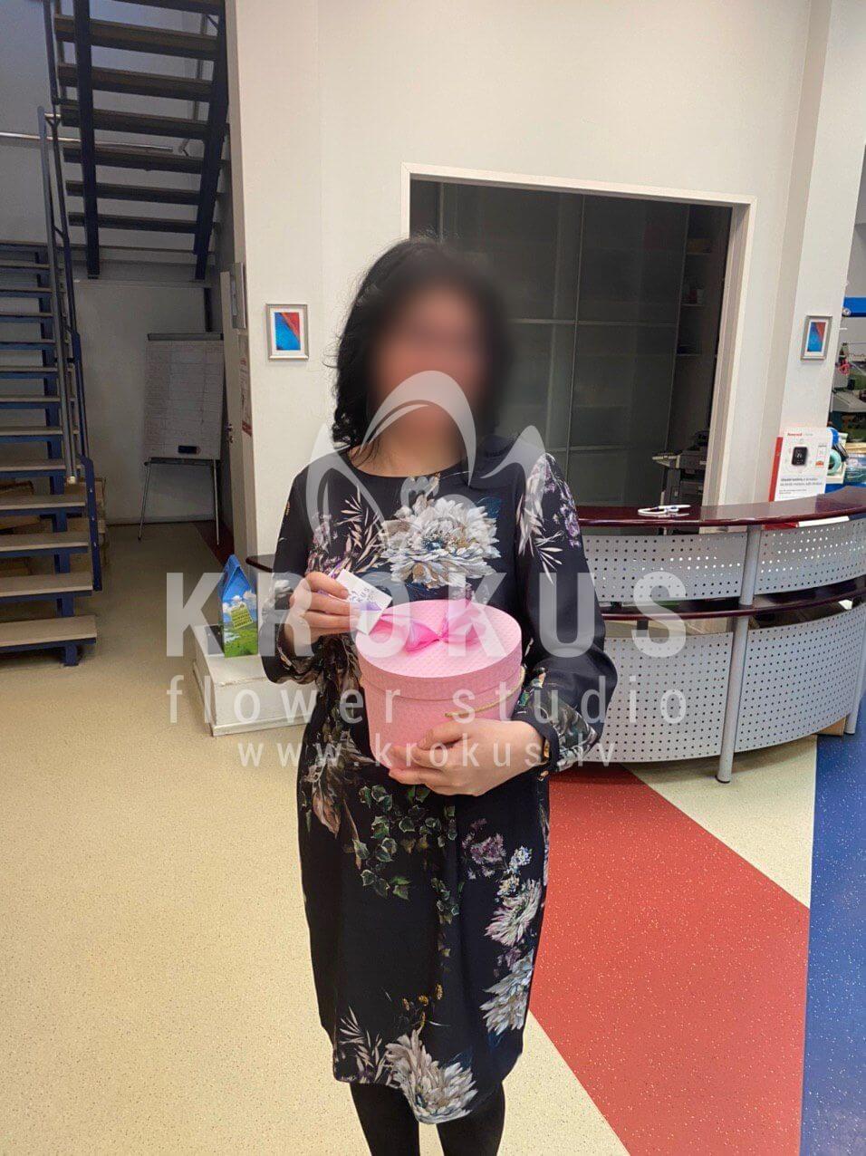Mēs piegādājām vēl vienu pasūtījumu uz pilsētu Rīga. Pasūtītājs vēlējās: Ziedu piegāde Flowerbox ar macarooniem (Izmērs:
