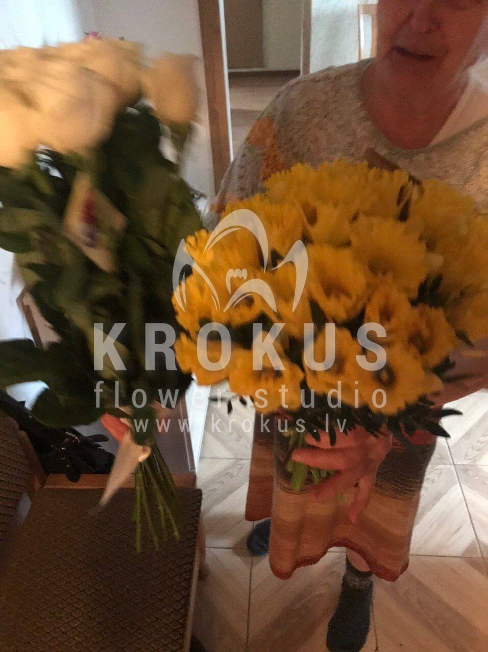 Mēs piegādājām vēl vienu pasūtījumu uz pilsētu Rīga. Pasūtītājs vēlējās: Ziedu piegāde Baltas rozes XXL 50cm. Ziedu piegāde Narcises