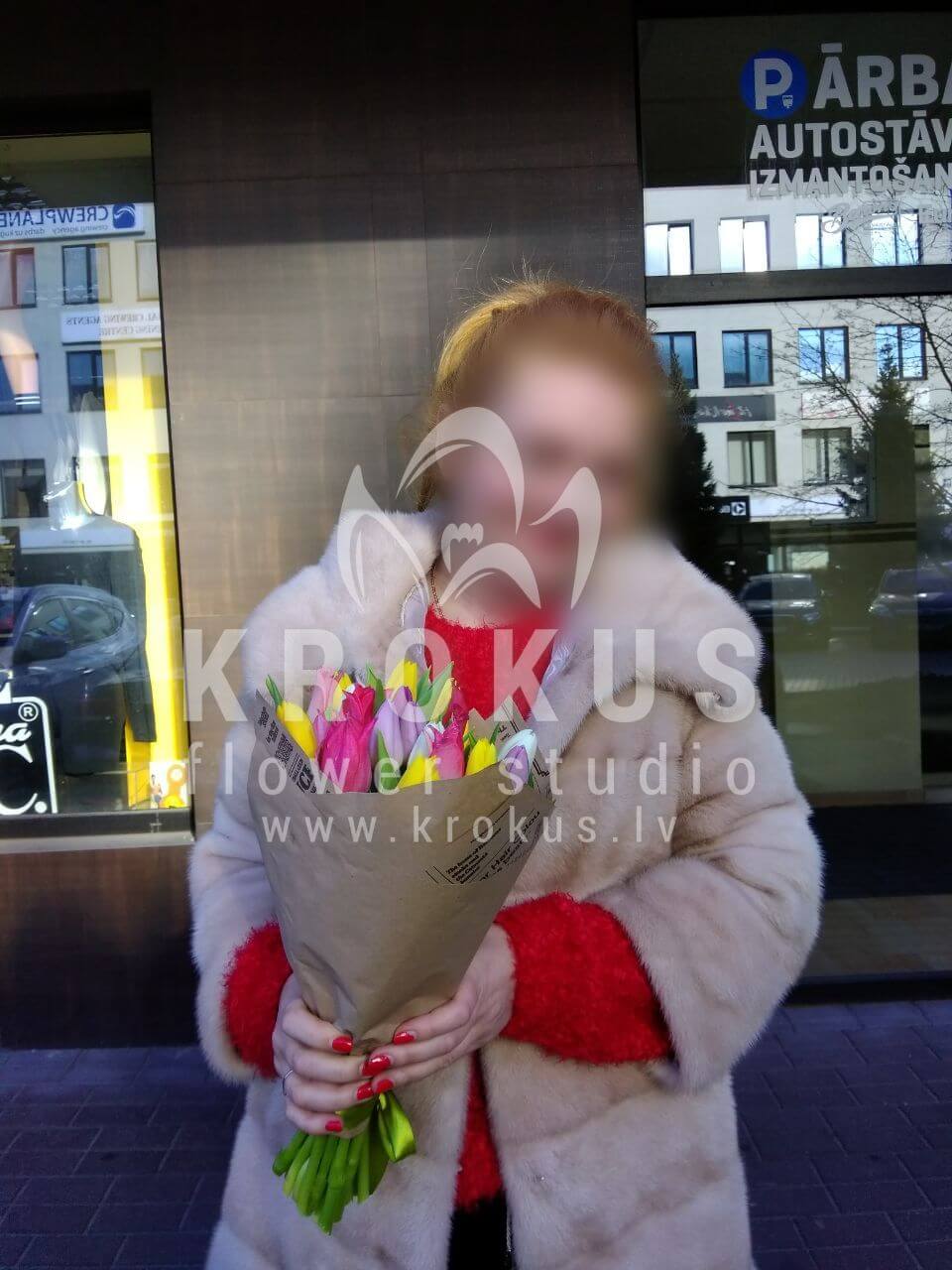 Mēs piegādājām vēl vienu pasūtījumu uz pilsētu Rīga. Pasūtītājs vēlējās: Ziedu piegāde Krāsainu tulpju pušķis