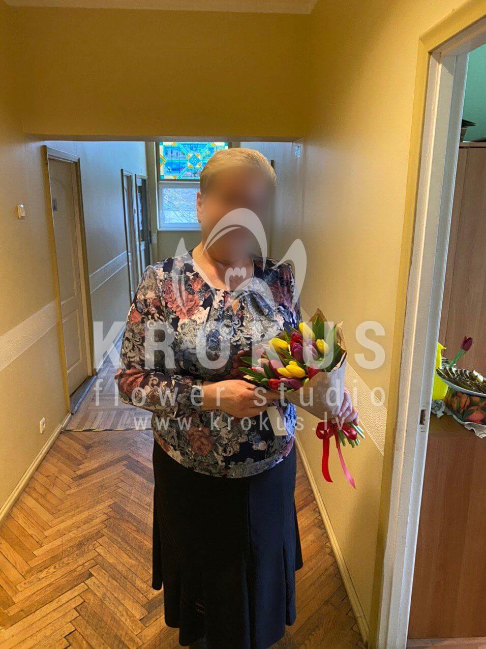 Mēs piegādājām vēl vienu pasūtījumu uz pilsētu Rīga. Pasūtītājs vēlējās: Ziedu piegāde Krāsainu tulpju pušķis