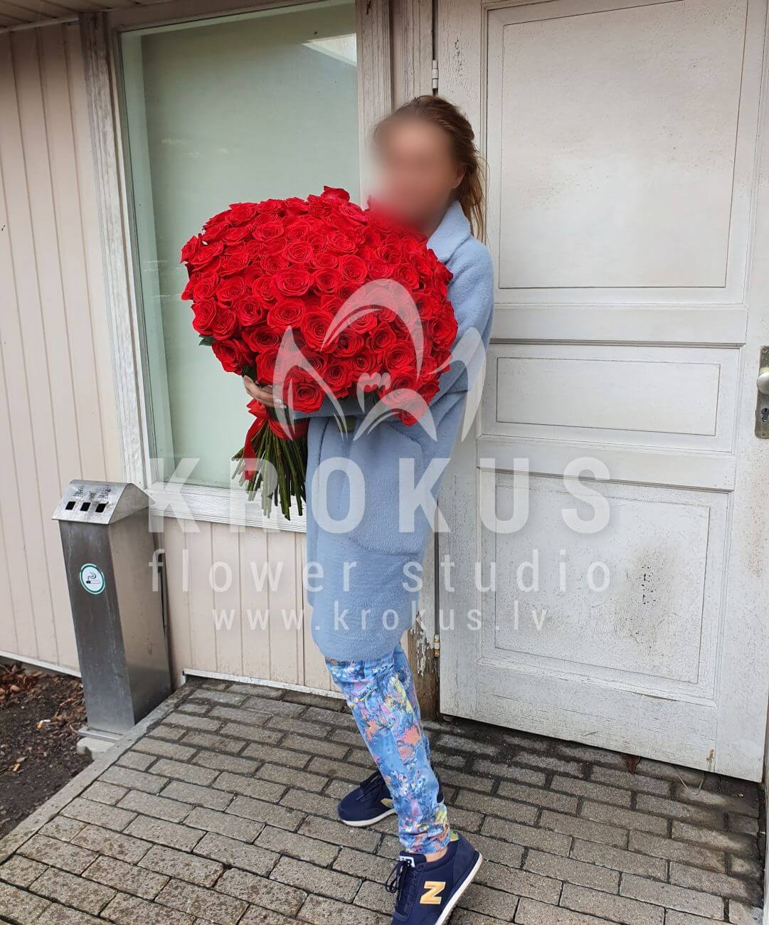 Mēs piegādājām vēl vienu pasūtījumu uz pilsētu Rīga. Pasūtītājs vēlējās: Ziedu piegāde 101 Sarkanas rozes XXL SUPER CENA!!!