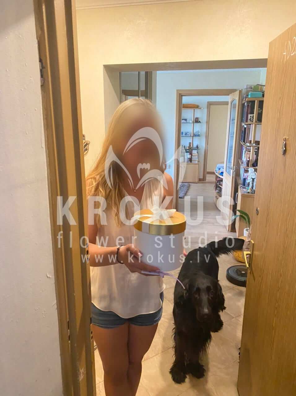 Mēs piegādājām vēl vienu pasūtījumu uz pilsētu Rīga. Pasūtītājs vēlējās: Ziedu piegāde Flowerbox ar macarooniem (Izmērs:
