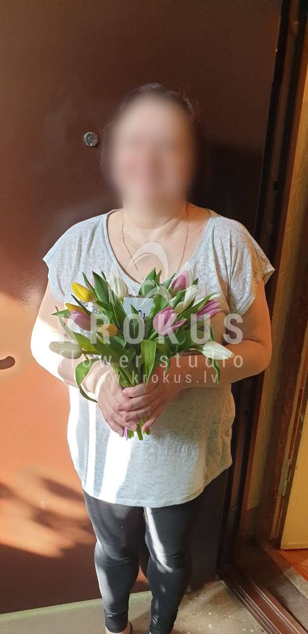 Mēs piegādājām vēl vienu pasūtījumu uz pilsētu Rīga. Pasūtītājs vēlējās: Ziedu piegāde Krāsainu tulpju pušķis