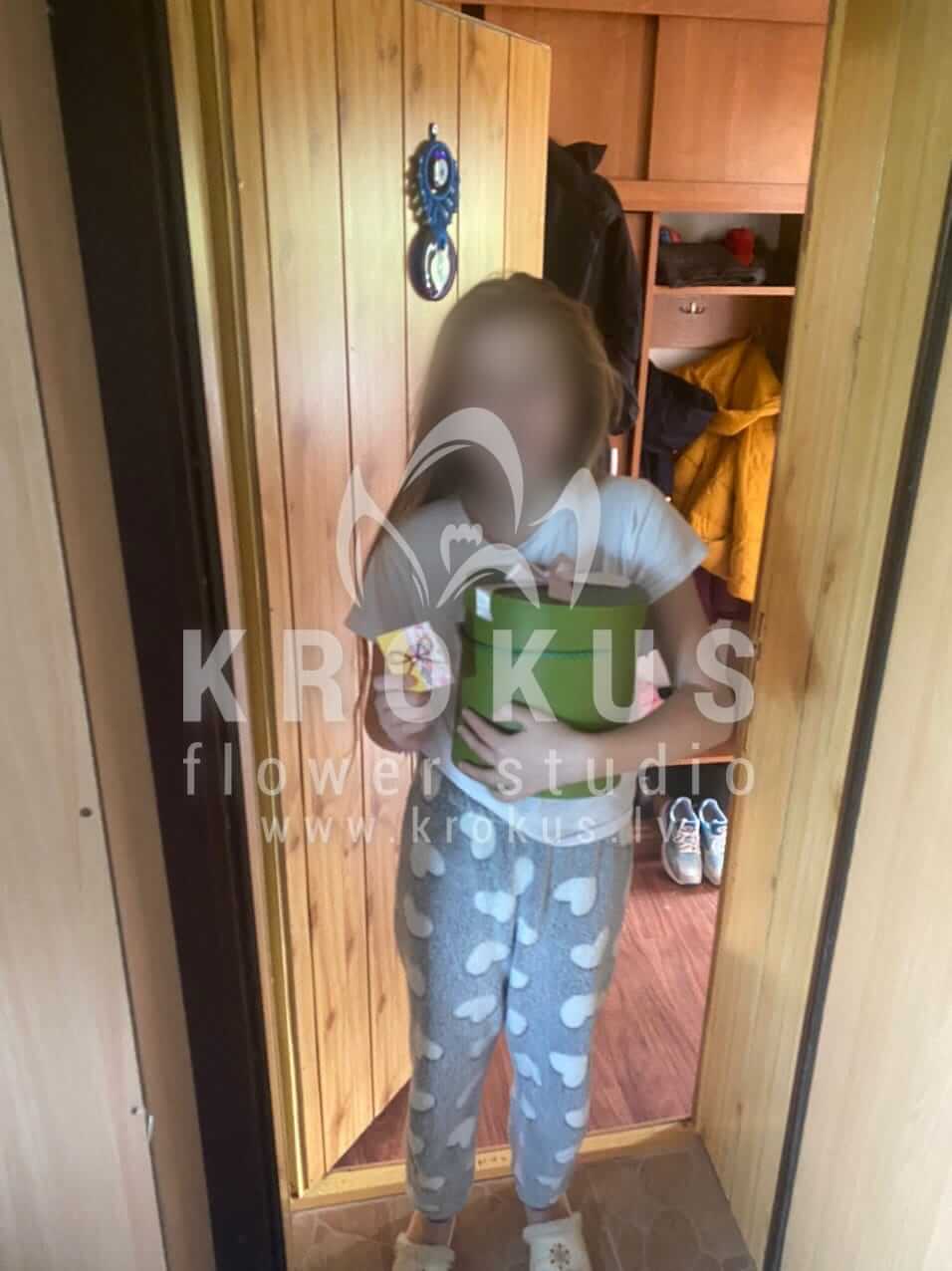 Mēs piegādājām vēl vienu pasūtījumu uz pilsētu Rīga. Pasūtītājs vēlējās: Ziedu piegāde Flowerbox ar macarooniem (Izmērs: