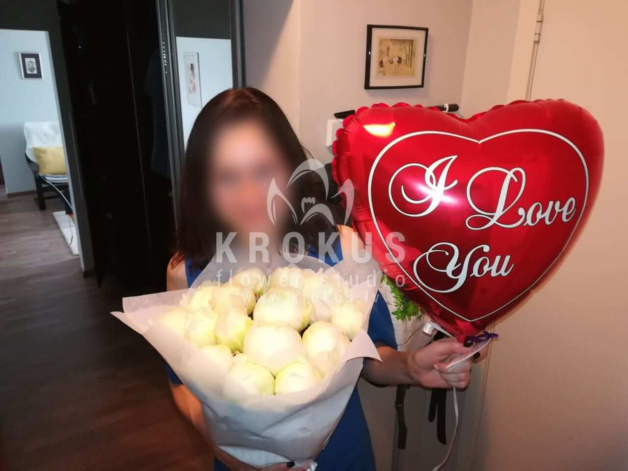 Mēs piegādājām vēl vienu pasūtījumu uz pilsētu Rīga. Pasūtītājs vēlējās: Ziedu piegāde Baltas peonijas. Ziedu piegāde Folija Balons sirds 18x45cm
