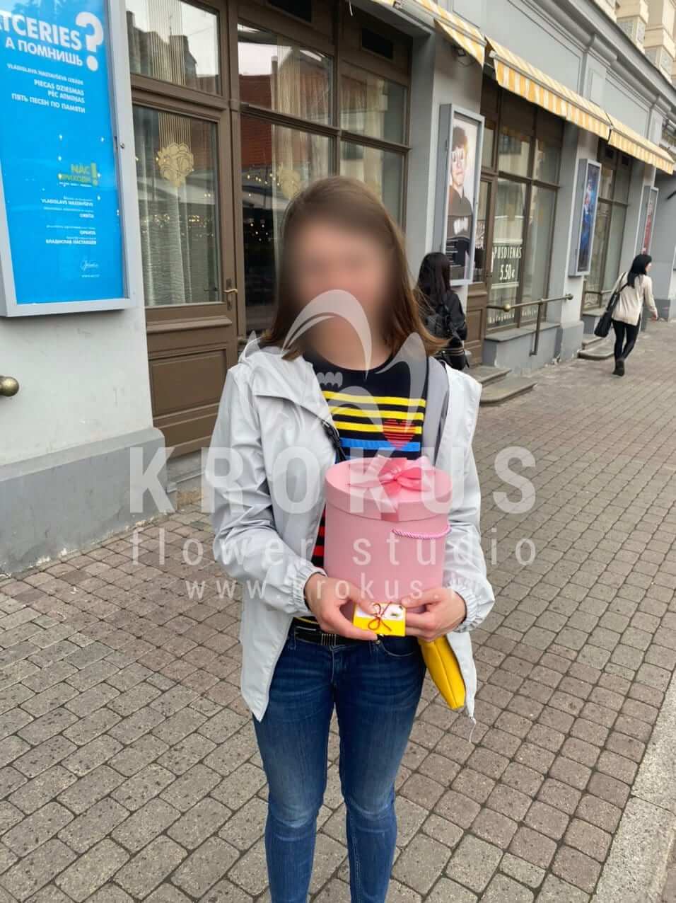 Mēs piegādājām vēl vienu pasūtījumu uz pilsētu Rīga. Pasūtītājs vēlējās: Ziedu piegāde Flowerbox ar makarūniem (macaron) (Izmērs: