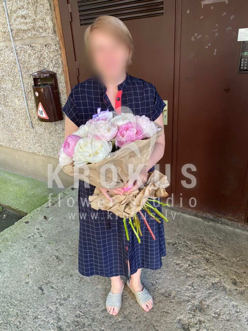 Mēs piegādājām vēl vienu pasūtījumu uz pilsētu Rīga. Pasūtītājs vēlējās: Ziedu piegāde Peoniju pušķis "Aromāts"