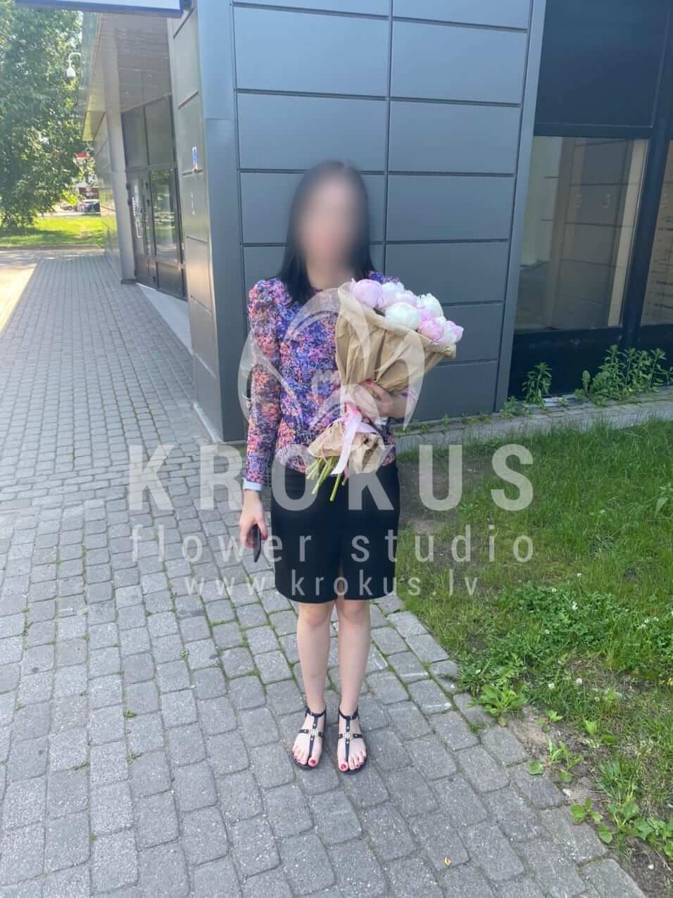 Mēs piegādājām vēl vienu pasūtījumu uz pilsētu Rīga. Pasūtītājs vēlējās: Ziedu piegāde Peoniju pušķis "Aromāts". Ziedu piegāde Raffaello 150g (Konfektes RAFFAELLO, 150g