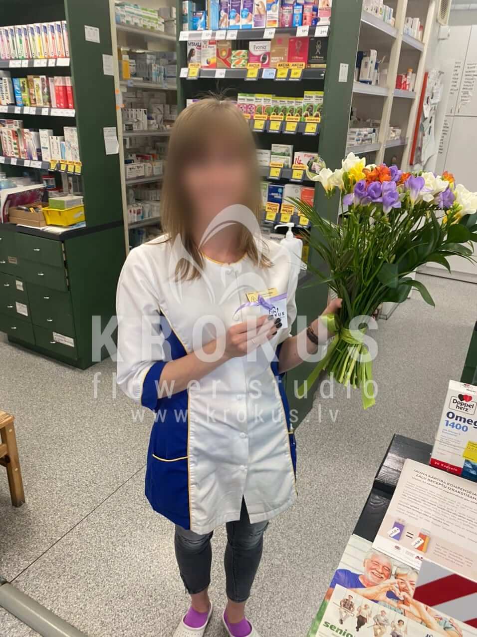 Mēs piegādājām vēl vienu pasūtījumu uz pilsētu Rīga. Pasūtītājs vēlējās: Ziedu piegāde Frēzijas (Attēlam fotogrāfijā ir ilustratīvs raksturs. Ja Jums ir svarīgi saņemt frēzijas noteiktā gatavības stadijā, lūdzam sazināties ar mums pirms veicat pasūtījumu.)