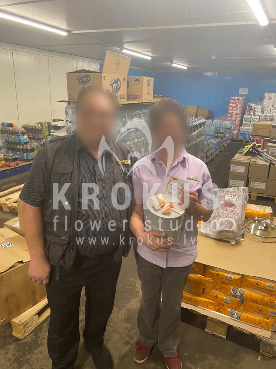Mēs piegādājām vēl vienu pasūtījumu uz pilsētu Rīga. Pasūtītājs vēlējās: Ziedu piegāde Flowerbox ar makarūniem (macaroon) (Izmērs: