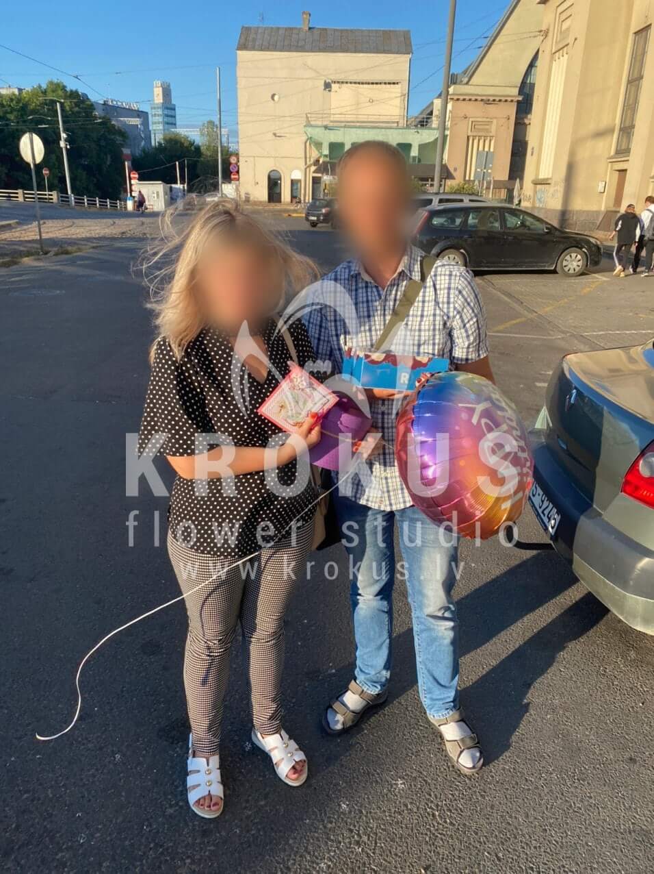 Fotogrāfijai ir ilustratīvs nolūks. Kastes krāsa var atšķirties.). Ziedu piegāde Balons Daudz laimes